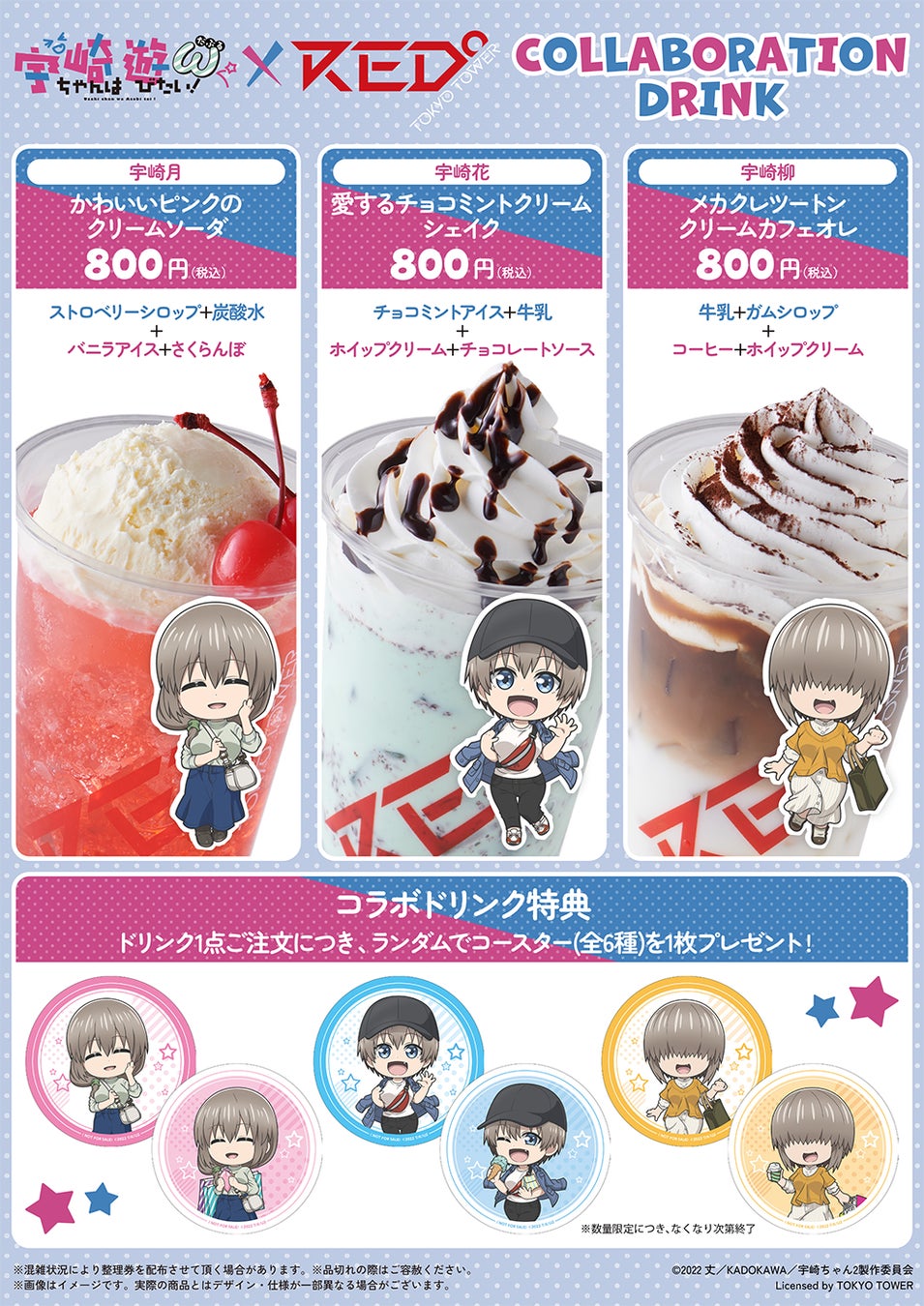 TVアニメ『宇崎ちゃんは遊びたい!ω』×「RED° TOKYO TOWER」のコラボイベントが開催!東京タワーに遊びに来た3人の描き下ろしグッズ販売や、謎解きやコラボドリンクなど様々な特別企画を実施!