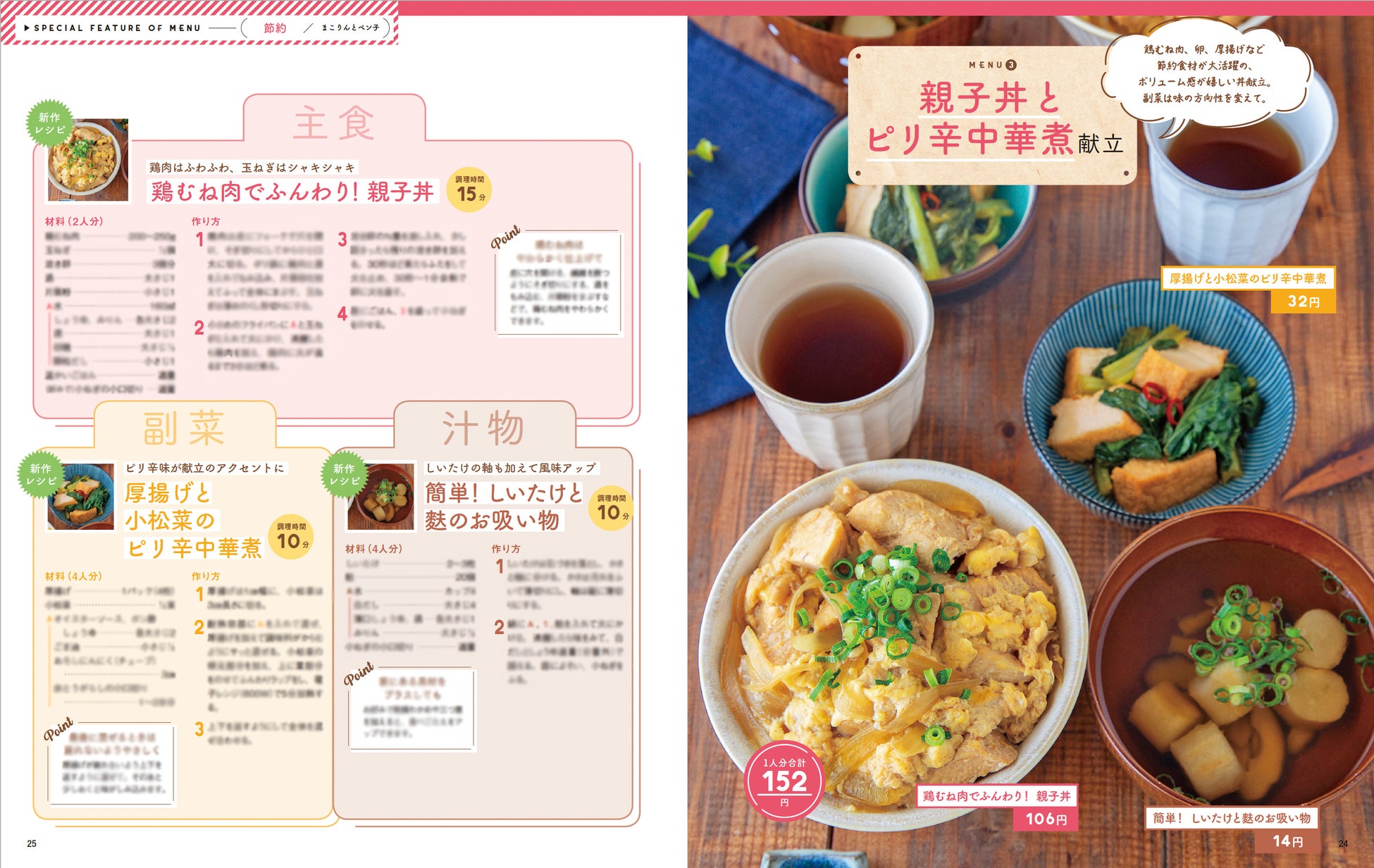 そのほか手軽にできる「2品献立」やたっぷりおなかいっぱい食べられる「ボリューム献立」も提案。