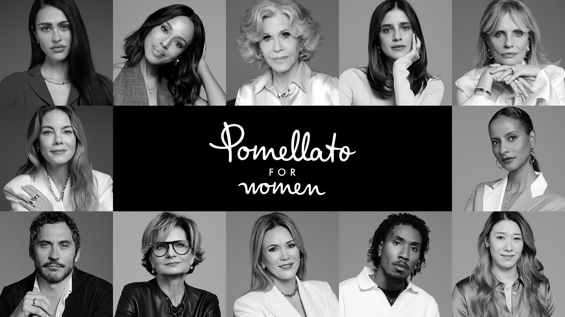 この動画のメインを務めるのはアカデミー賞受賞俳優であり、「Pomellato for Women」プラットフォームの長年のアンバサダーであるジェーン・フォンダ。高潔かつ明瞭なメッセージを通じてキャンペーンの使命を世界に届け、共感を引き起こしています。また、フォンダと共に本キャンペーンに参加するキャストたちは国際的な顔触れが揃い、集団として変革を生み出す力を表しています。ケリー・ワシントンとミシェル・モナハンは俳優として、また女性の権利と参画を擁護する立場から声を上げています。イタリアの女優で、イタリア映画界が誇る最も有望な若手スターのひとりであるベネデッタ・ポルカローリとイザベラ・フェラーリは世代を超えたイタリア文化の強さを体現し、アメリカのモデルでメンタルヘルスの重要性を訴えるアメリア・グレイは若い女性たちを取り巻く現実に根差した視点を提供します。ドイツの起業家として知られ、長年にわたり機会を与えることの重要性を訴えてきたサラ・ヌルは、エンパワーメントはアクセスの確保と自立を通じて築かれなければならないと強調します。フランスのテクノロジー業界のリーダーで作家でもあるアンジェリーク・ジェラールは、経済的自律をリーダーシップや主体性と結び付けて論じます。プロバレーボールプレーヤーの石川真佑は、スポーツ界のロールモデルです。スペインの俳優兼映画監督、パコ・レオンは平等とインクルージョンを語る盟友としてキャンペーンに加わり、キューバで生まれイタリアで活躍し、優勝経験もあるアスリートのアンディ・ディアス・エルナンデスは、逆境を乗り越える力と融和の象徴として、自由と機会がコミュニティ全体を向上させることを力強く訴えます。さらに動画には、リーダーシップを通じて「Pomellato For Women」を対話と行動のためのグローバルなプラットフォームへと発展させたサビーナ・ベッリも登場し、この道を進むことで男女が「共に輝ける」ことを再認識させてくれます。
