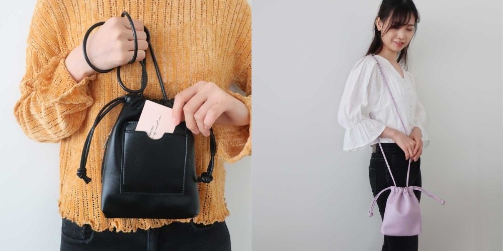 巾着型のショルダーバッグは大きすぎないサイズ感と、コロンとしたフォルムが可愛い!