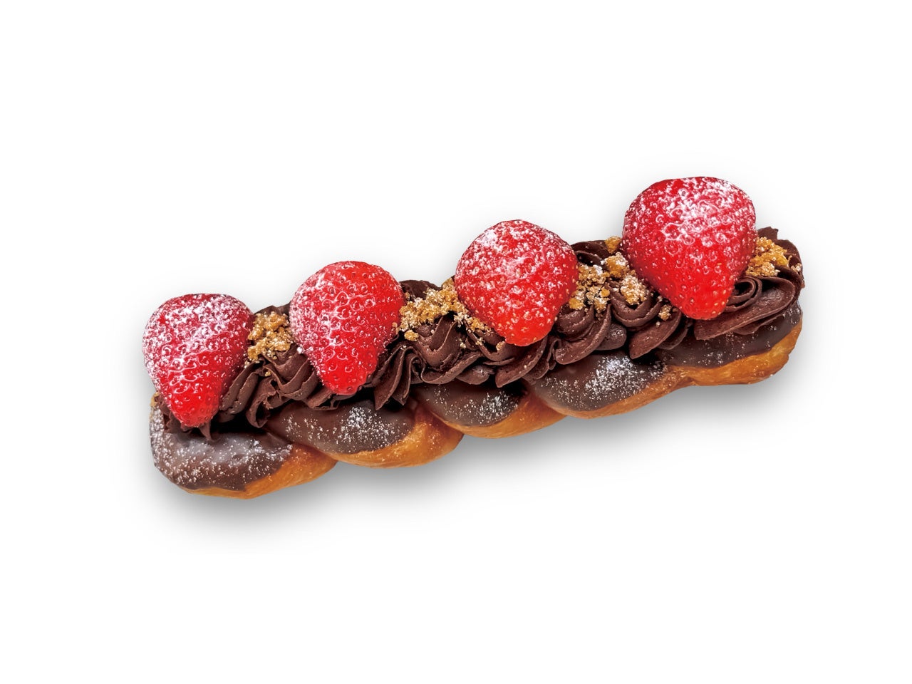 とろけるようなチョコクリームにストロベリーを贅沢に重ねた、冬にこそ食べたくなるリッチなショコラドーナツ。