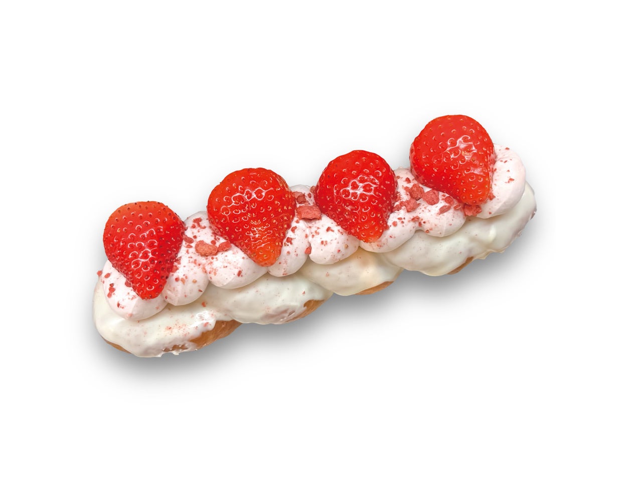 雪のようにふわりと軽いホイップと、いちごの甘酸っぱさがマッチした、愛らしい“ホワイトサンタ”ドーナツ。