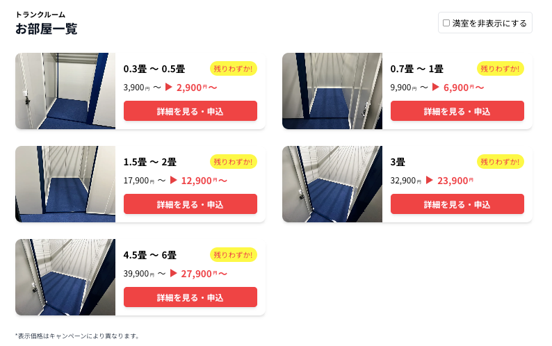 トランクルームってどのくらいの広さで、どの程度の荷物が収まるの?