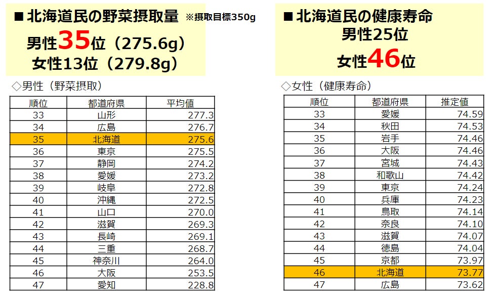 ■北海道民は「野菜摂取量」や「健康寿命」に課題あり