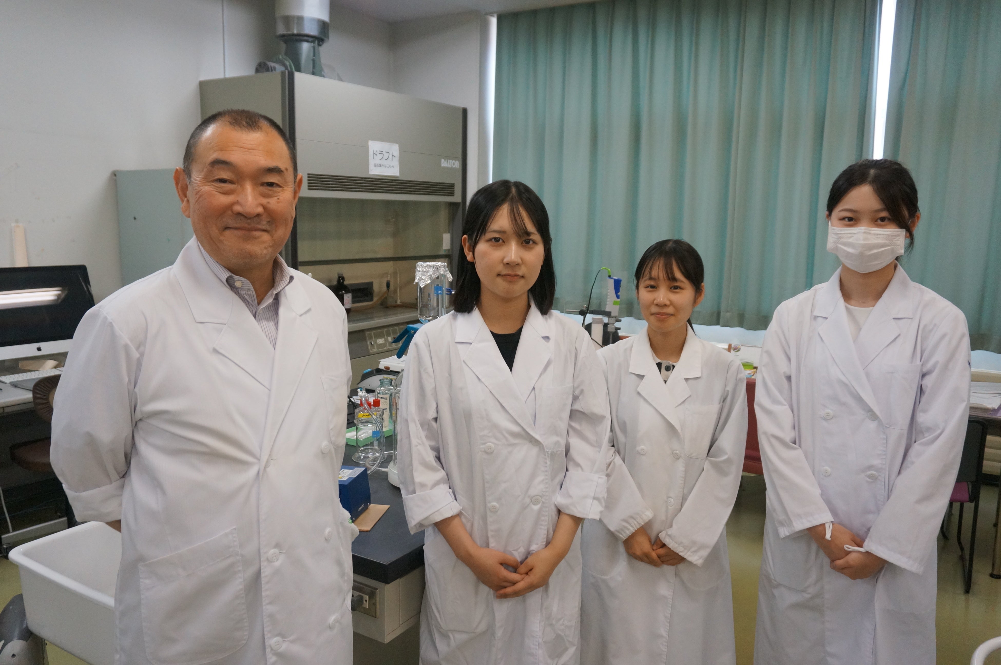 継続して研究に取り組んでいる中河原俊治教授(人間生活学部食物栄養学科)と食品学研究室ゼミ生