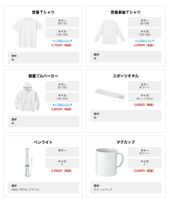 価格 :Tシャツ1枚1,100円(税込み)から ※プリント代込み、100枚以上まとめて割適用