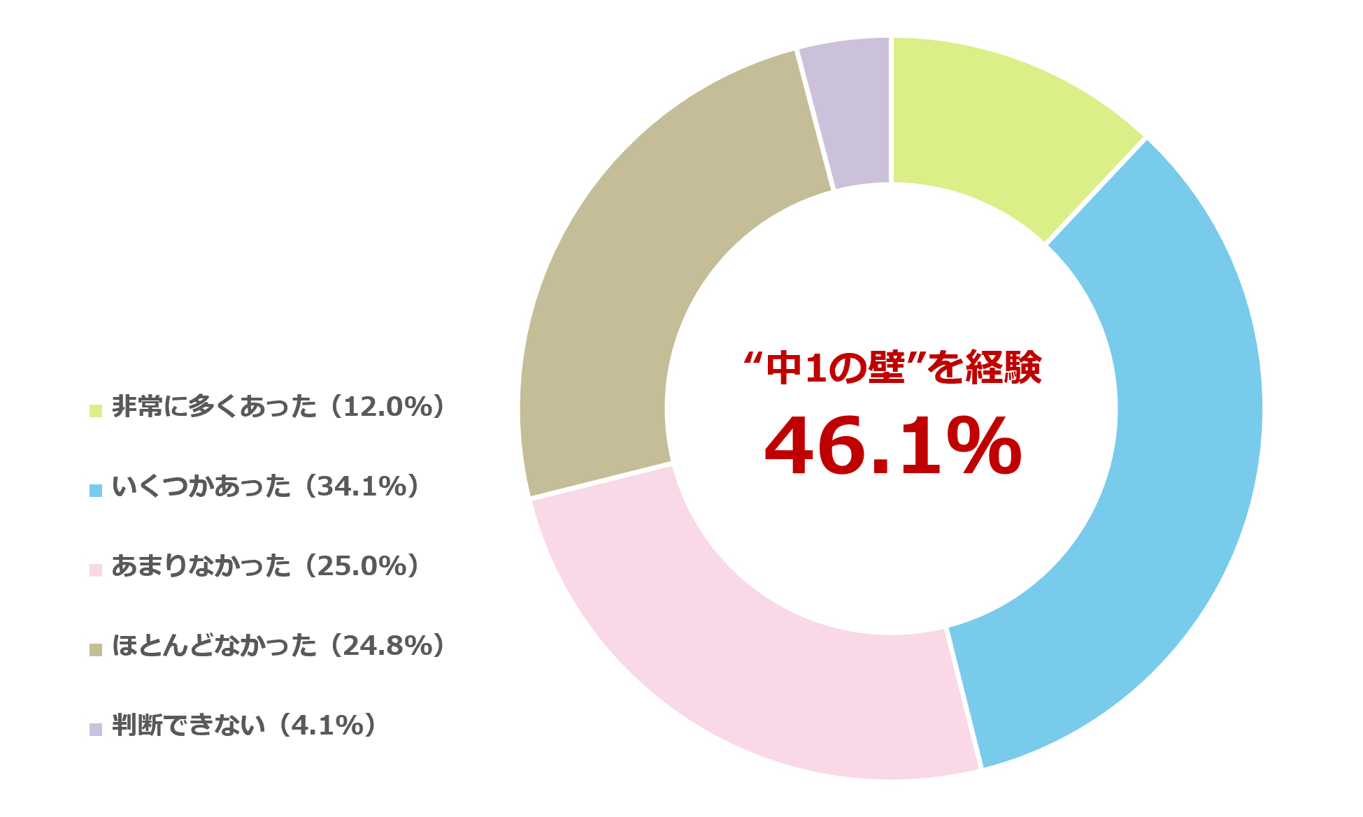 ・中学進学後、“中1の壁”を46.1%の家庭が経験