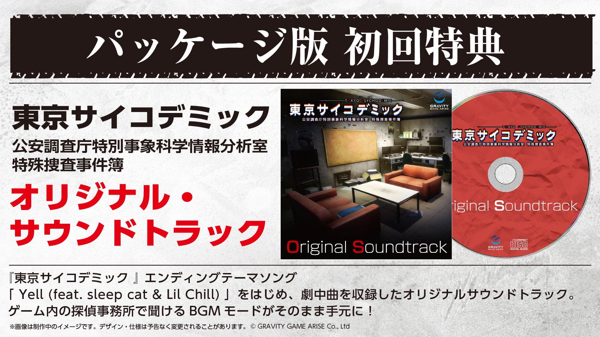 初回特典は、劇中曲を収録した『東京サイコデミック オリジナル・サウンドトラック』CDをお付けします。