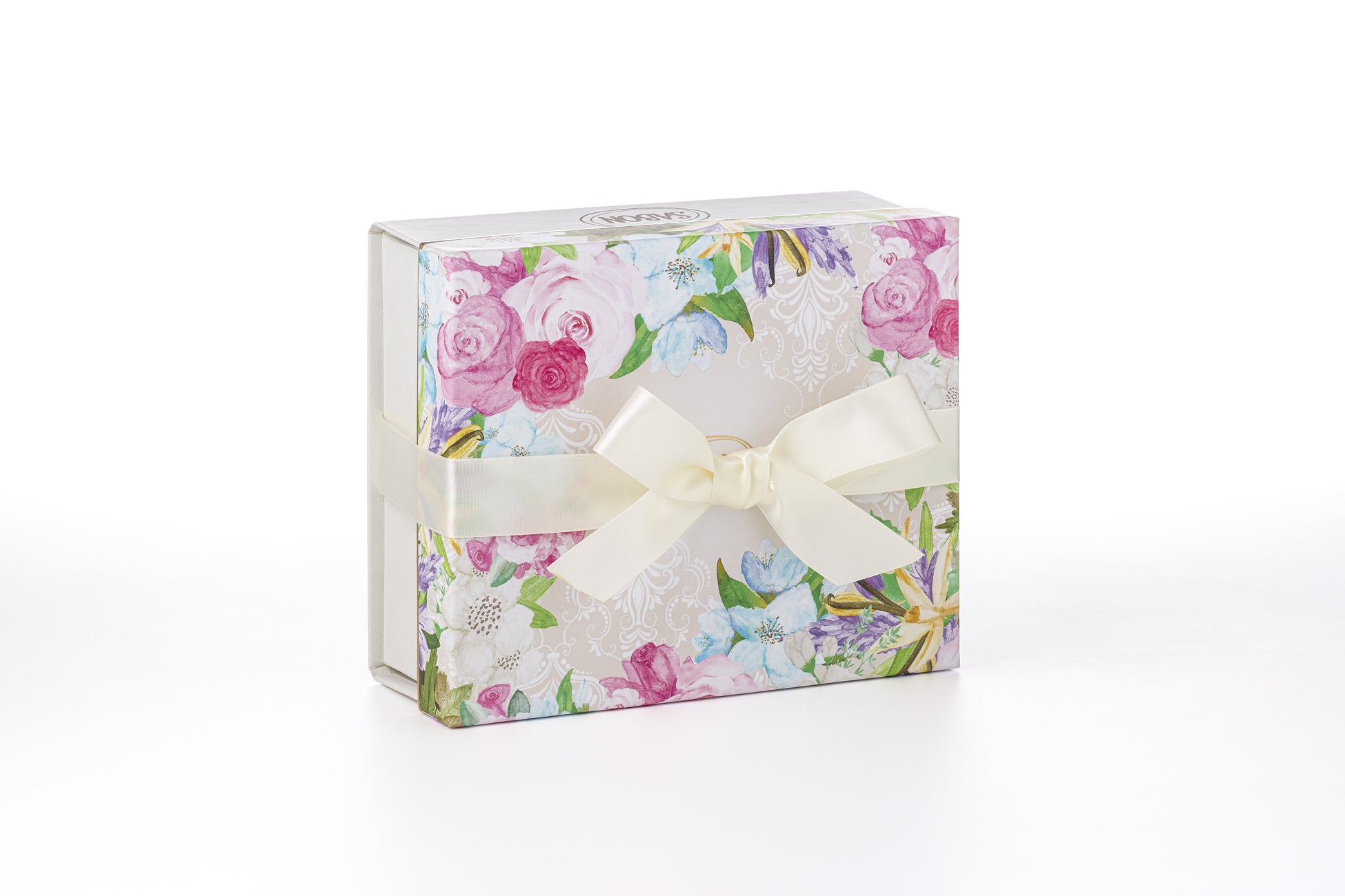 内容 ハイドレイティングシャワーオイル 500mL、ボディスクラブ 320g、フラワーブーケ、ハートスプーン、ギフトボックス
