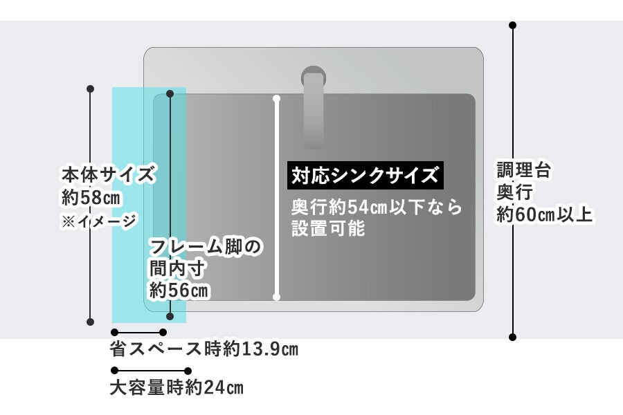 シンク横の隙間に設置でき、省スペースながら、