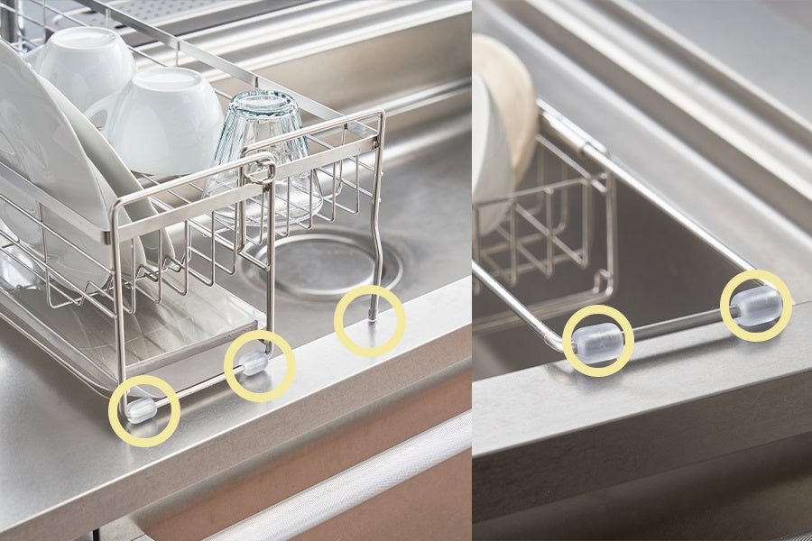 シンクを広々使いたい方に!かごの容量を調節できる伸縮式「水切りディッシュラック」をmottoleより新発売。