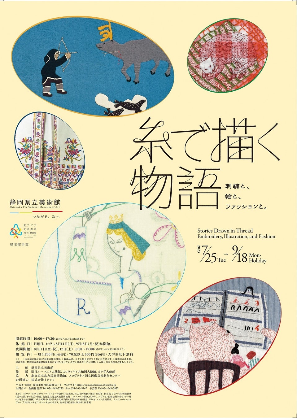 刺繍という手仕事の、温かみや力強さに加えて、多様性や可能性を感じていただくことを目的とする企画展「糸で描く物語」展と「静岡手創り市」が手がけるマーケットを同時開催することで、展覧会自体の理解の深化、多角的な鑑賞といった効果が生まれるとともに、ものづくりへのさらなる関心を呼び起こすでしょう。