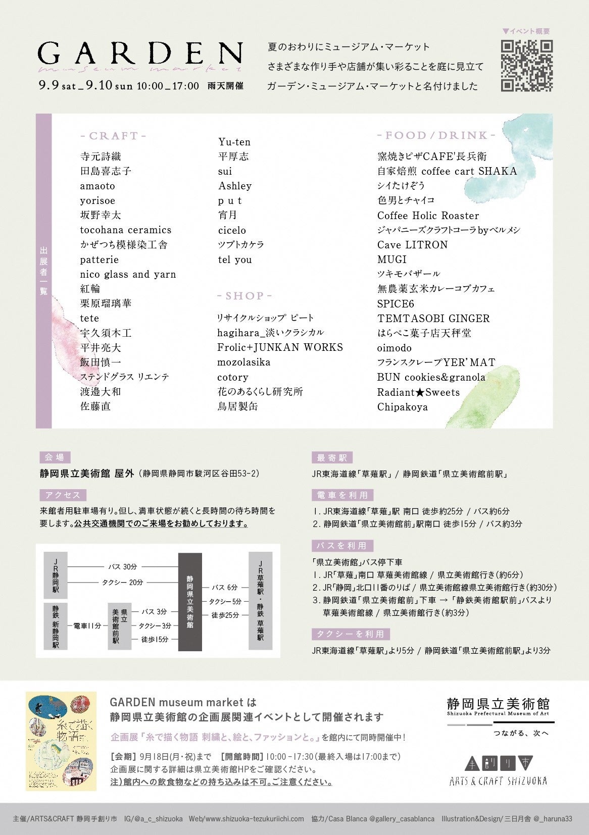詳細は、GARDENチラシまたはInstagram @a_c_shizuokaをご覧ください。