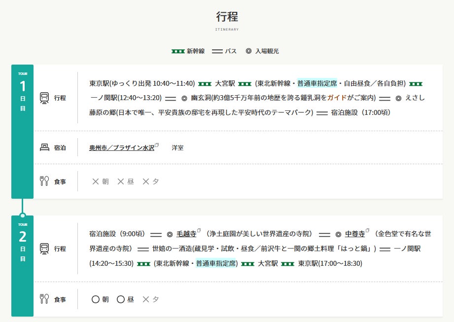 ●東京駅・上野駅・大宮駅・仙台駅からのご参加にあたっては事前に「大人の休日倶楽部」へのご入会が必要です。入会の詳細はこちらをご覧ください。