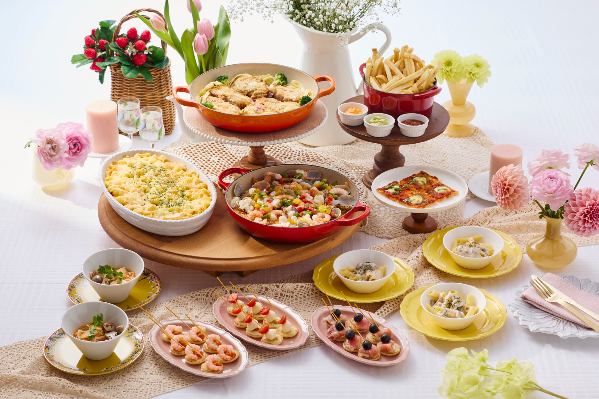 「いちごとお花が春の訪れを呼ぶガーデンパーティ」をテーマに、パステルカラーのやわらかな色合いを基調とした春らしい華やかな装飾を展開します。