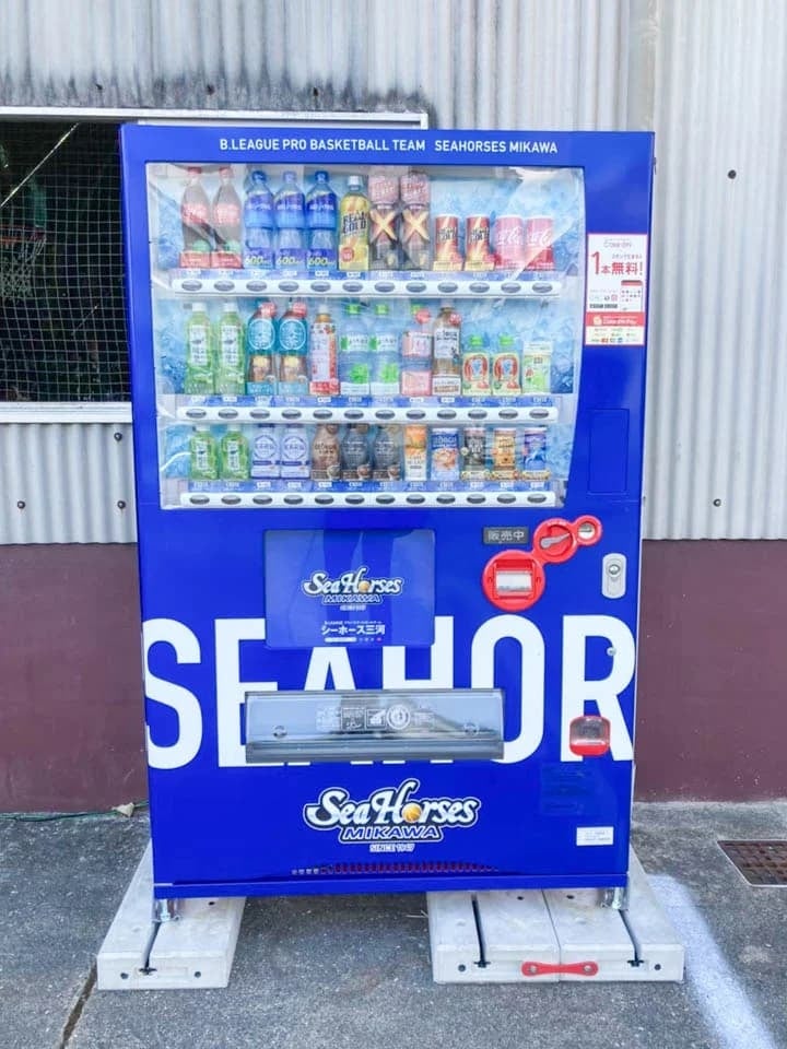 また、本自販機は売上金の一部がシーホース三河へ協賛されチームの強化運営に繋がります。