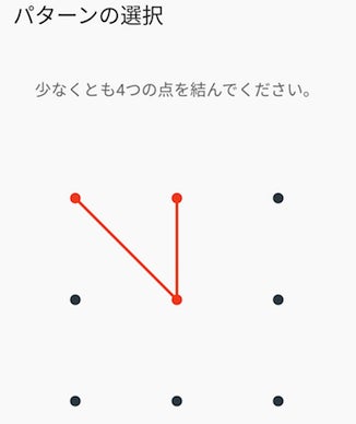 Androidのパターンロックを設定する場合、少なくとも4つ以上の点を結ぶ必要があります。