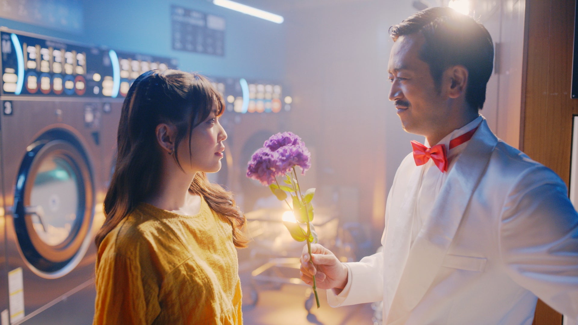 【パリイ】は英語で「受け流す」、そして「受け流す」と言えば誰しもが『ムーディ勝山』さんを思い浮かべることでしょう。今回制作したCMでは、花耶さん演じる女性が謎の集団に追いかけられているところをムーディ勝山さんが颯爽と助けに入り、懐かしの名曲「右から来たものを左へ受け流すの歌」をバックに華麗な殺陣を披露!
