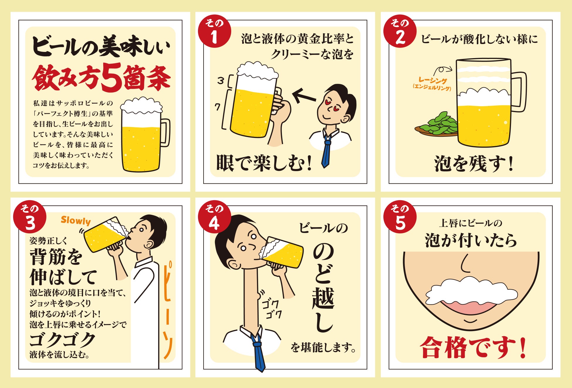 生ビールをもっと美味しくお楽しみいただくために、新たなアプローチで生ビールを美味しく召し上がっていただくための極意について生ビールの有識者の方と生ビールを美味しく飲むための方法について、生ビールを片手に徹底議論を行い5つの極意を編み出しました。