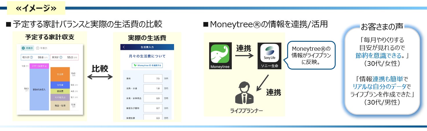 ライフプランの中で計画した生活費や収入と、現在の家計を比較できます。また、「Moneytree®」をご利用の場合、当社アプリと連携することで、リアルなデータをライフプランに反映できます。