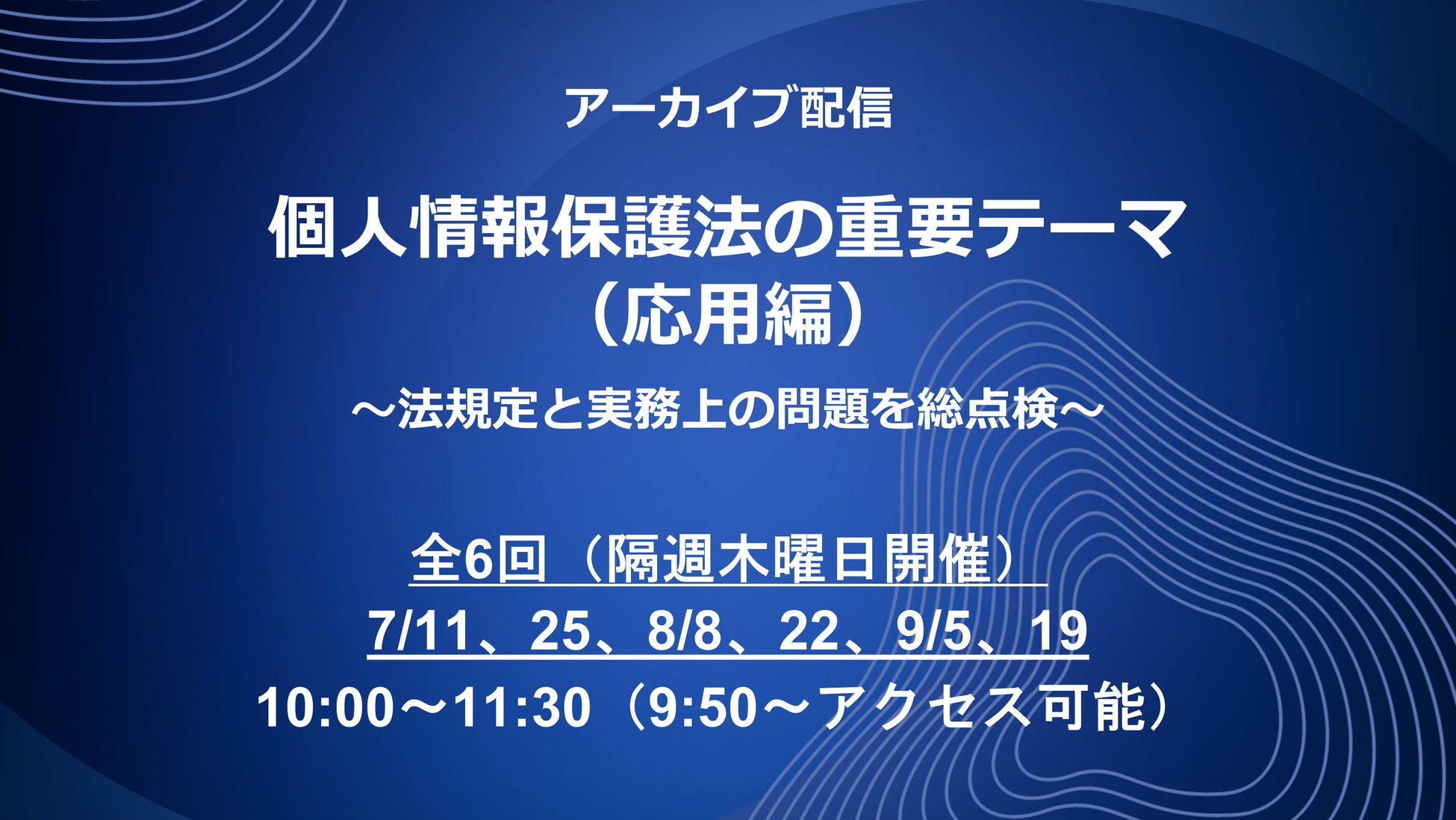 Webセミナー「個人情報保護法の重要テーマ(応用編)~法規定と実務上の問題を総点検~」のアーカイブ配信が決定