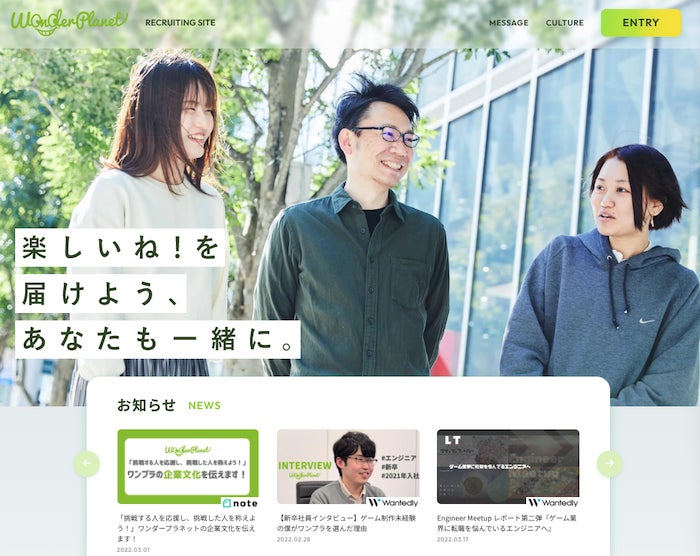 ワンダープラネット、新卒・キャリア採用サイトを大幅リニューアルオープン!