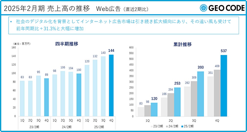 2025年2月期の通期決算を発表、売上好調なWeb広告(前年同期比+31.3%)と営業支援ツール「ネクストSFA」(同+33.8%)が大きく伸長