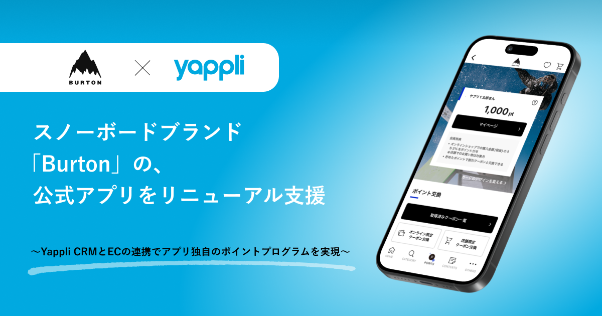 ヤプリ、スノーボードブランド『Burton』の公式アプリをリニューアル開発支援