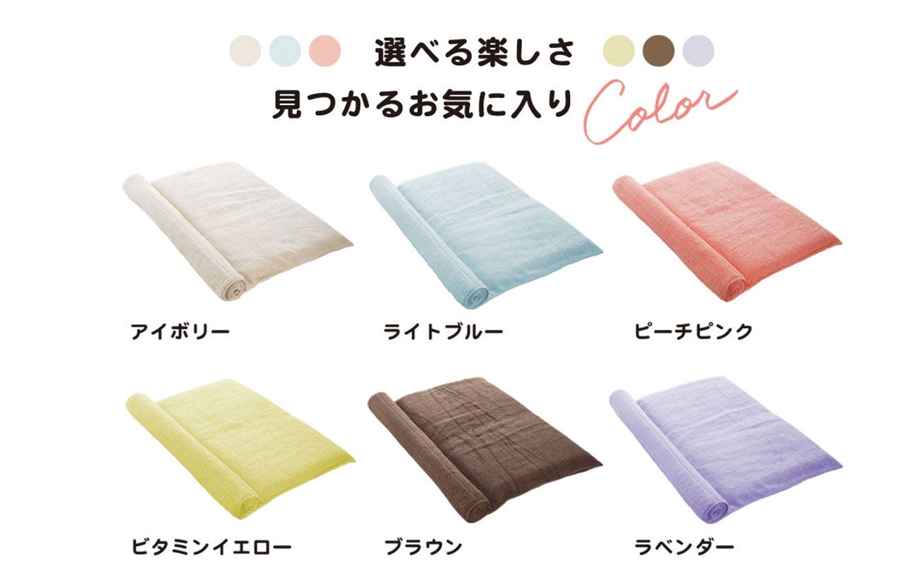 カラーは、アイボリー、ライトブルー、ピーチピンク、ビタミンイエロー、ブラウン、ラベンダーの6色をご用意。