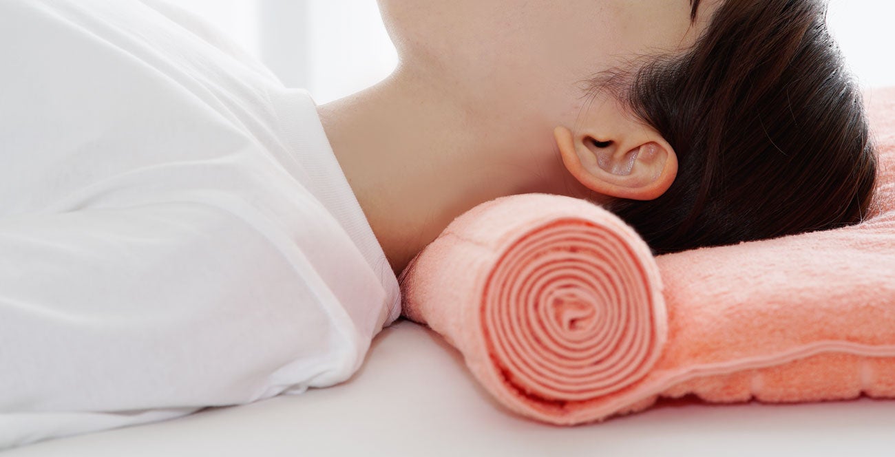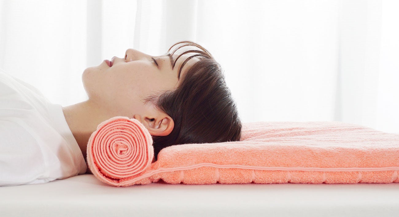 長~いタオル部分をくるくると巻くと、首元にぴったりフィット。適度な支持力を持つタオルの層により、優しく支えられているような寝心地です。首の後ろにできる隙間を埋めて、負担がかかりがちな首元をしっかりサポートします。