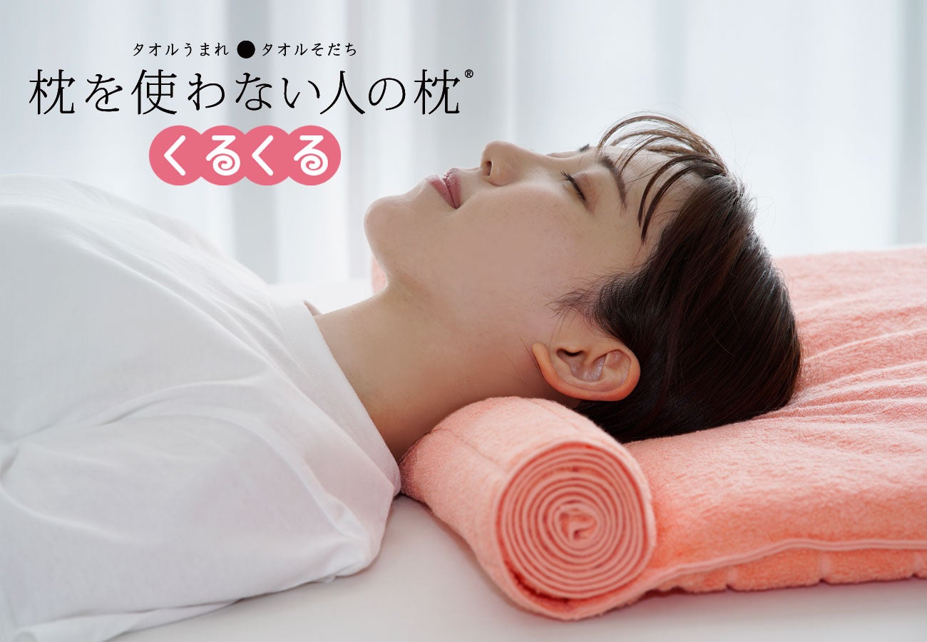 日本人の6.1%は枕を使わない。そんな"枕を使わない人"のために作られた、くるくる巻いたタオルが首元にフィットする、頭を持ち上げすぎない超低めのタオル枕「枕を使わない人の枕 くるくる」7月13日新発売