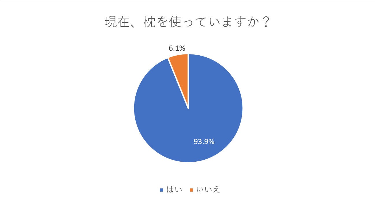 枕に関心のあるユーザー119,967人(※1)を対象に、「現在、枕を使っていますか?」という質問をしたところ、「はい」と答えた人が93.9%、「いいえ」と答えた人が6.1%という結果となりました。