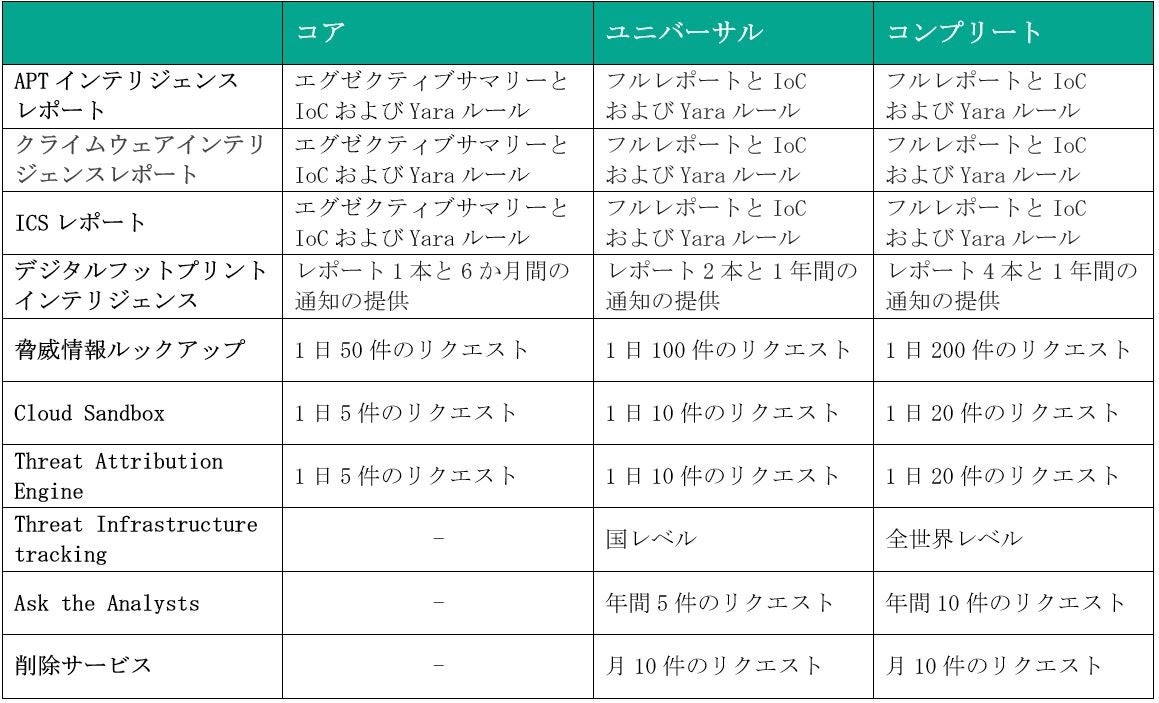 ・各種レポート:APTインテリジェンス、クライムウェアインテリジェンス、ICS、デジタルフットプリントインテリジェンス。