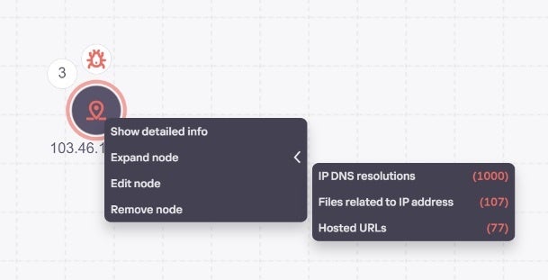 追加できる既知のインジケーター情報:悪意のあるIPアドレスに関連するドメインとゾーン、過去にそのIPアドレスに関連付けられていたそのほかのURL、そのURLへアクセスを試みたファイルのハッシュ、そのURLからダウンロードされたファイルのハッシュ、そのIPアドレスにホストされているサイトがリンクしているURL(およびそのURLからリンクされているURL)ほか。