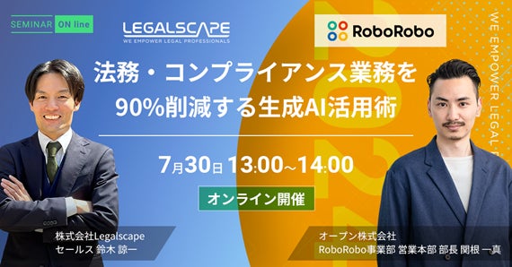 【7月30日(火)13:00スタート】オープンとLegalscapeが「法務における生成AIの活用」をテーマにした無料セミナーを開催