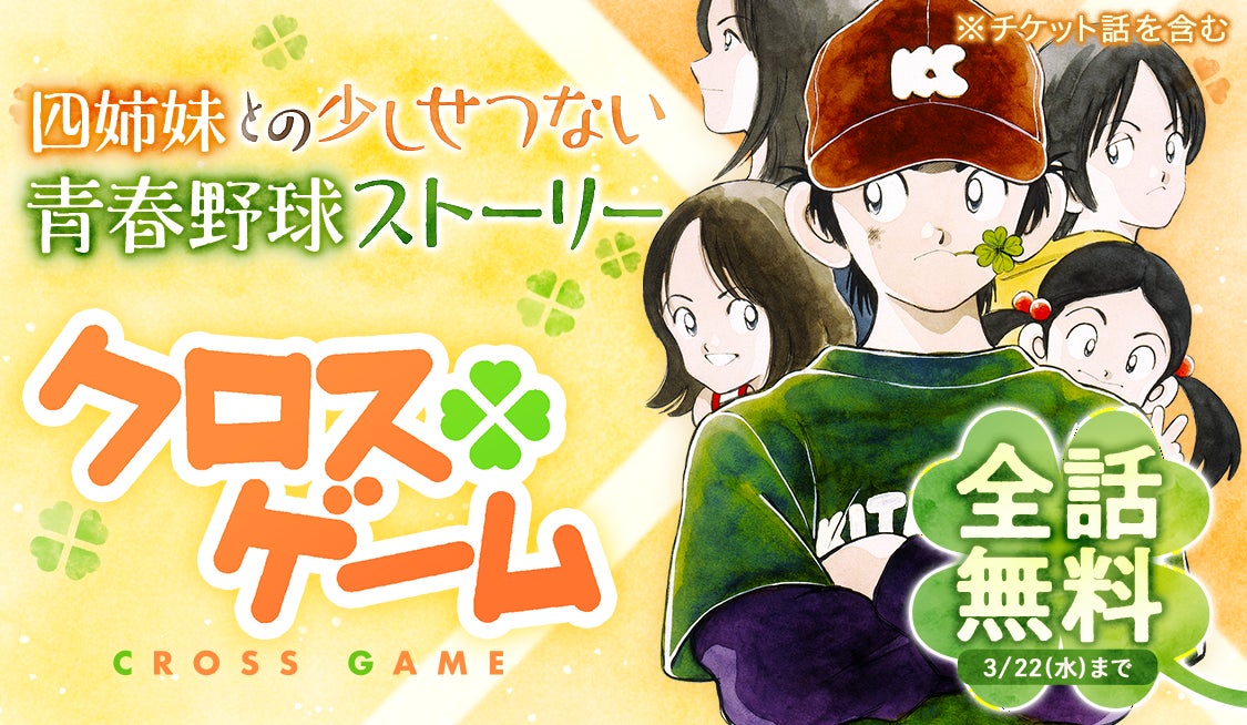 and factory株式会社(本社:東京都目黒区、代表取締役社長:青木倫治、以下and factory)は、株式会社 小学館(本社:東京都千代田区、代表取締役社長:相賀信宏、以下小学館)と共同運営するマンガアプリ「サンデーうぇぶり」において、『クロスゲーム』の全話無料キャンペーンを2月23日より実施します。