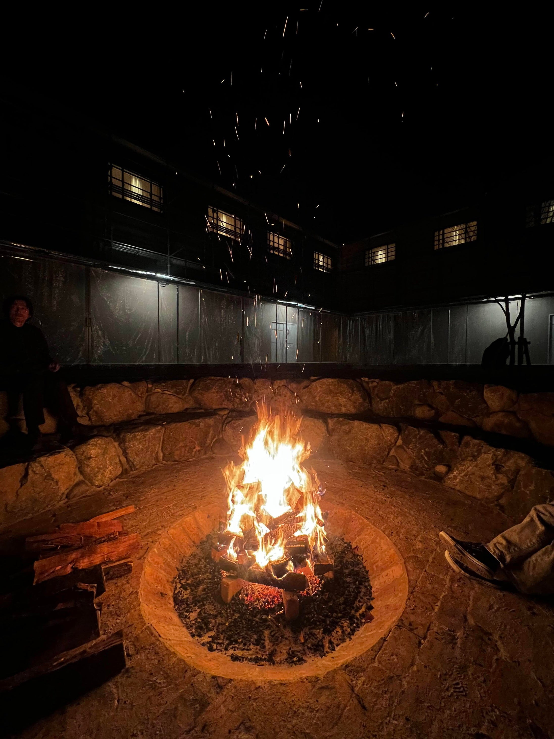 夜にはイルミネーションが灯り、ヴィレッジ全体がロマンチックな雰囲気に包まれる。中庭にはファイヤーピットが設置され、焚き火の音や揺れる炎が、日常の疲れを癒し、大切な人との会話をより深める特別なひとときを演出します。