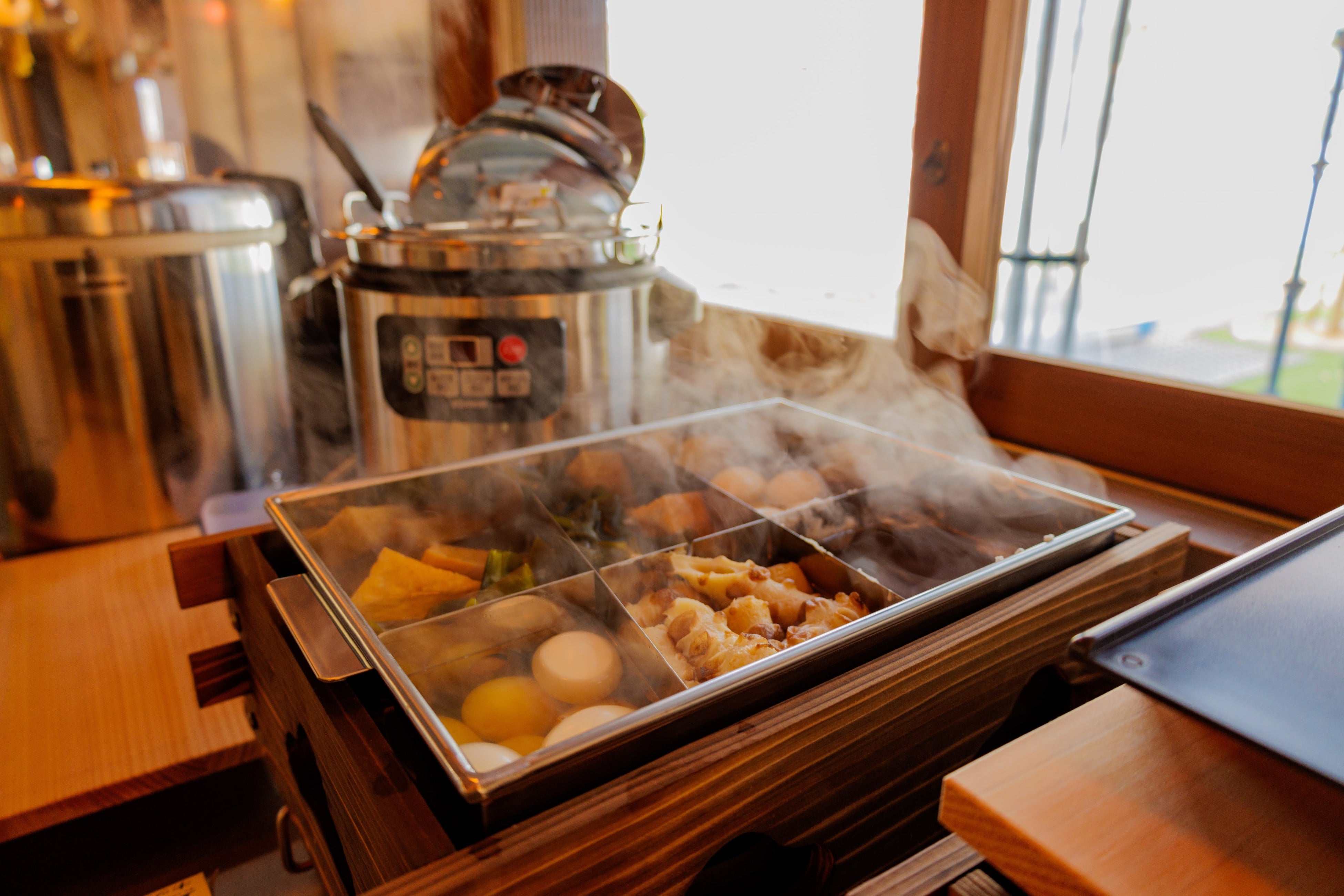 日本の伝統的な居酒屋文化を現代風にアレンジした空間。カウンター席、小上がり席、屋外には掘りごたつ席もあり、趣ある空間。丁寧に煮込んだおでん、高級の海苔を使用した海苔手巻きが食べられるのは原宿・浅草の他はここだけ。https://gonpachi.jp/nasu/