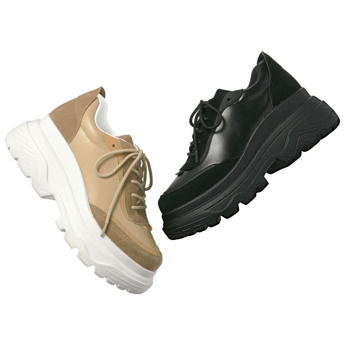 本商品はボリューム感のあるフォルムによりスタイルアップ効果が期待できる厚底スニーカ―。はっ水加工が施されているため、お手入れが楽ちんなところもうれしいポイント。90年代テイスト漂う厚みのあるソールデザインはファッションに取り入れるだけでワンポイントになります。大人な配色が普段のコーデにも馴染む、使いやすさ抜群のアイテムです。