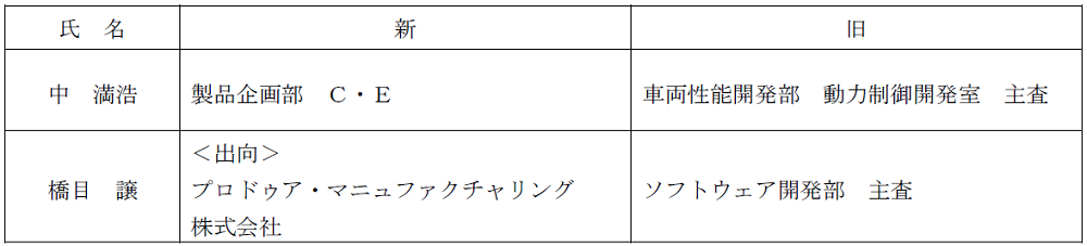 ダイハツ工業株式会社は、2023年5月1日付で下記の通り、幹部職の人事異動を行います。