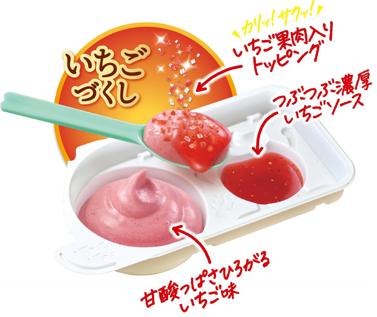 ・カリッサクッ食感が楽しいいちご果肉入りトッピング付き