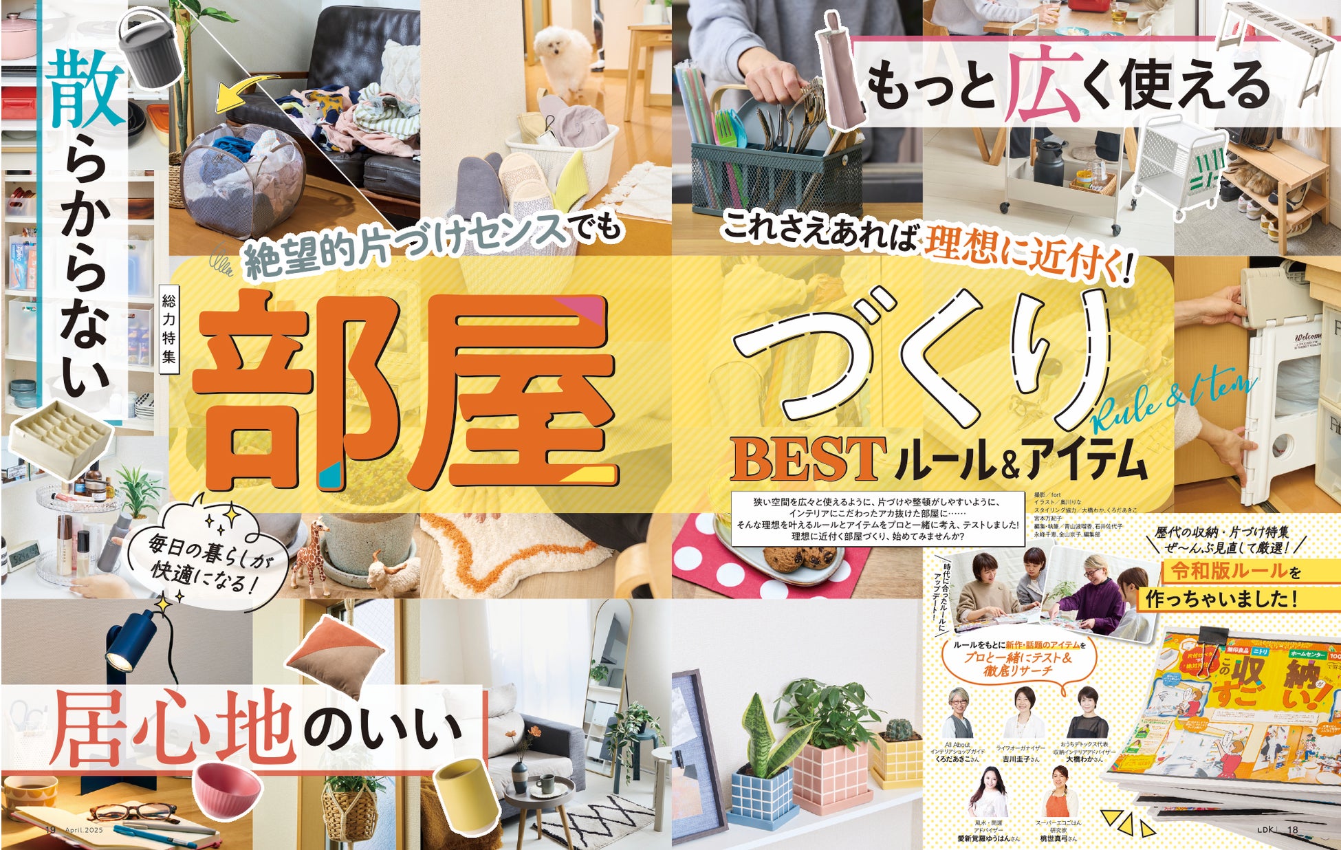 4月号は「部屋づくりBESTルール&アイテム」を総力特集! 片づけセンスに自信がなくてもOK!! 広々としていて散らからない、居心地のいい部屋づくりをサポートします。また、業務スーパー新作〇×ジャッジ、ごきげんになれる文房具特集など、生活が楽しくなる情報を集めました。4月からの新年度が始まる前に、暮らしをアップデートしちゃいましょう。