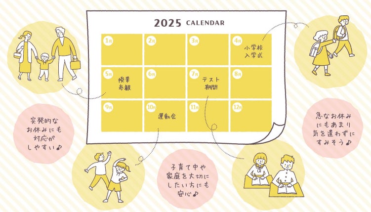 店舗で働く従業員の家族の学校行事などを事務所に掲示し、シフト作成や従業員同士の相談に役立てます。卒園式・卒業式・入学式・運動会・テスト期間などを共有することで、無理のないシフト調整を可能にし、働きやすい環境を整えます。