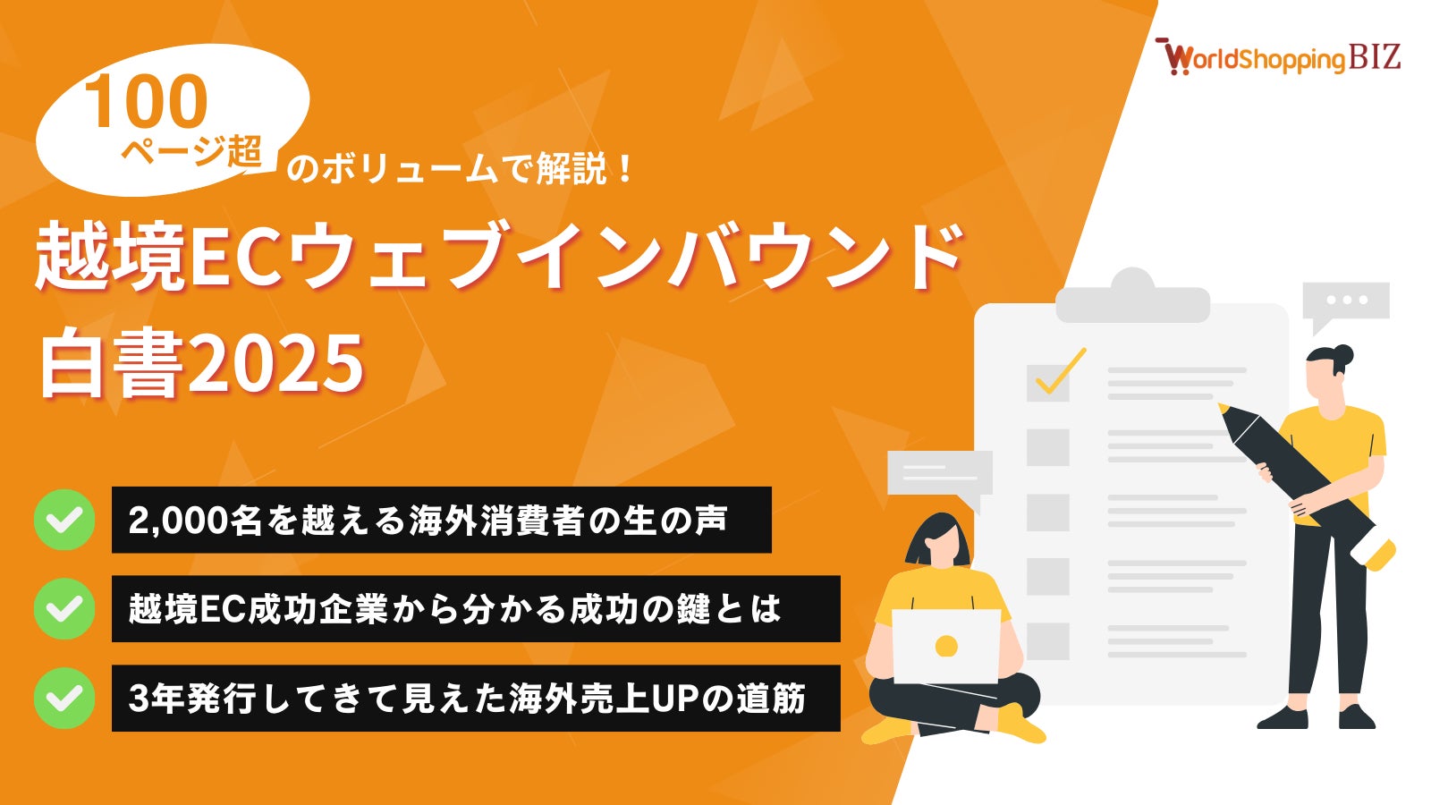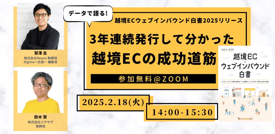 「WorldShopping BIZ」を提供する株式会社ジグザグ(本社:東京都渋谷区、代表取締役:仲里一義)は、海外ビジネス支援プラットフォーム「Digima~出島~」等を運営する株式会社Resorz(本社:東京都新宿区、代表取締役:兒嶋裕貴)と、「越境EC・ウェブインバウンド®白書2025」のホワイトペーパーを無償公開いたしました。