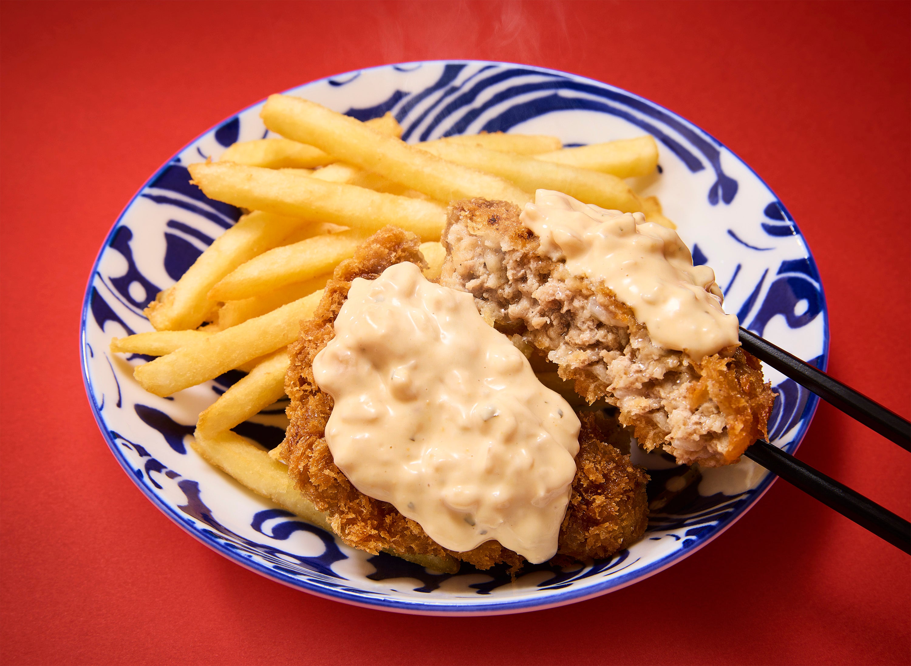 厳選された牛肉と豚肉、こだわりの生パン粉でサクサク感と、ジュワっとあふれる肉汁を両立させた超ジューシーなメンチカツです。