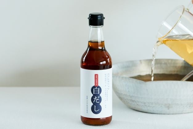本商品のだしには、ミネラルを多く含む南アルプス白峰三山の伏流水を始め、「焼津産鰹本枯節」「九州産焼きあご」「煮干いわし」「伊豆産乾燥椎茸」など、うま味を最大限に引き出すこだわりの国産天然素材を使用しています。また、製造は昭和46年の創業以来、伝統的な醤油づくりを続ける、静岡県唯一のJAS認定醤油工場に依頼。香りを大切にしながら丁寧な工程で作られているので、見た目も綺麗な黄金色の白だしに仕上がっています。またarikoさんが半年かけて毎日家庭料理に使用し、配合を調整し続けた結果、どんな料理も簡単に味がキマる白だしが完成しました。