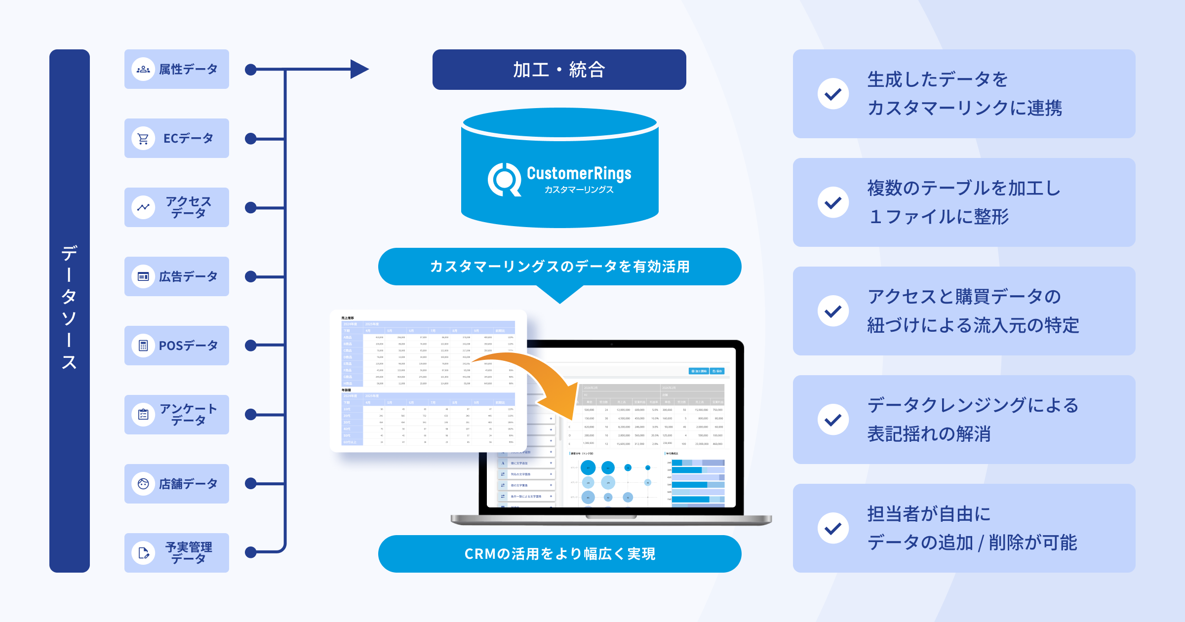 CRM/MAツールカスタマーリングスに、専門スキル不要で、多様なマーケティングデータを加工・活用できる 「データクラフト」 機能を新規搭載