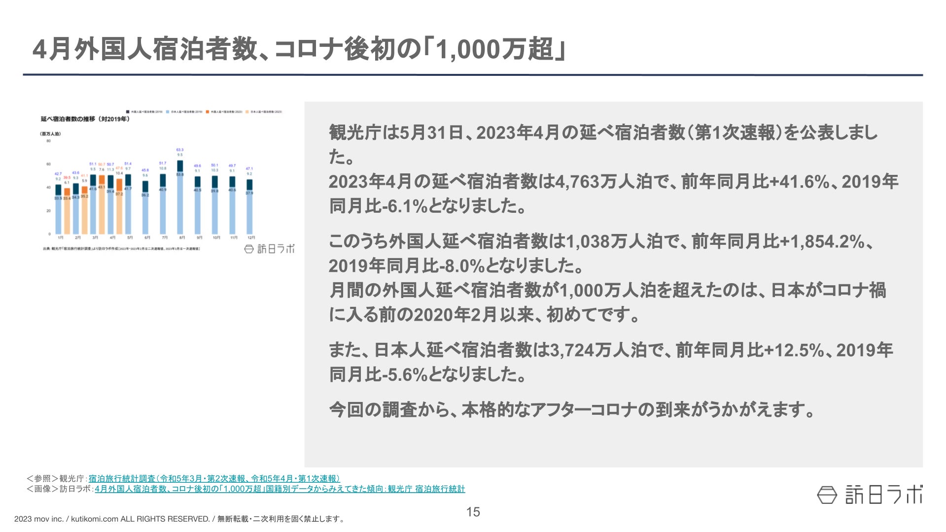 4月外国人宿泊者数、コロナ後初の「1,000万超」