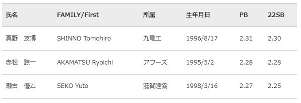 「セイコーゴールデングランプリ陸上2023横浜」出場選手発表 第3弾(男子走高跳・走幅跳、女子走幅跳)
