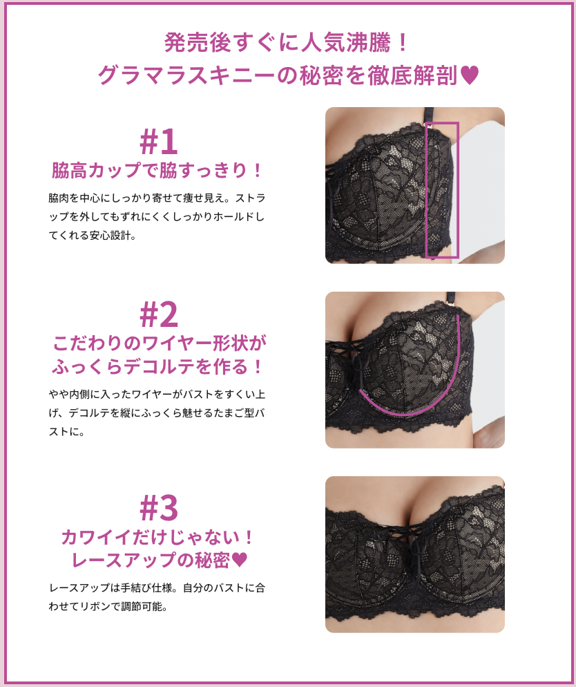 着痩せ効果抜群の盛れるストラップレスブラ。